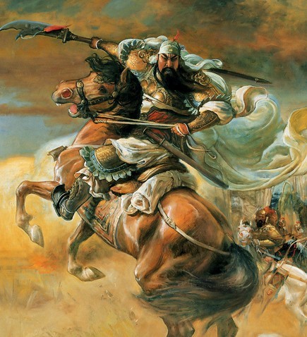 關羽的出生地解縣是出產鹽的盛地,因此他早年是運鹽隊的護衛。後來,關羽因犯事逃離家鄉。中平元年(184年),劉備在涿組織起了一支義勇軍參與撲滅黃巾軍的戰爭,關羽與張飛同在其中。劉備輾轉擔任許多官職後,投奔昔日同窗公孫瓚,被封為平原國相,任關羽、張飛為別部司馬,分統部曲。三人情同兄弟,常一起同床而睡,當劉備坐下時,關、張二人更不辭勞苦隨身守護。